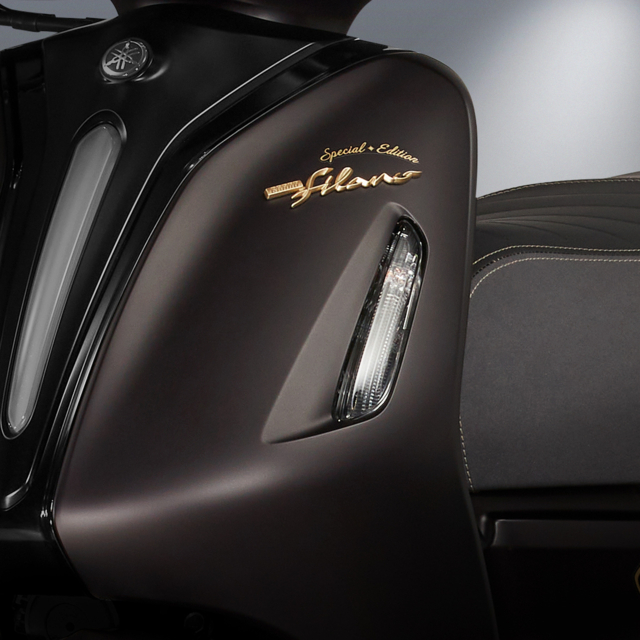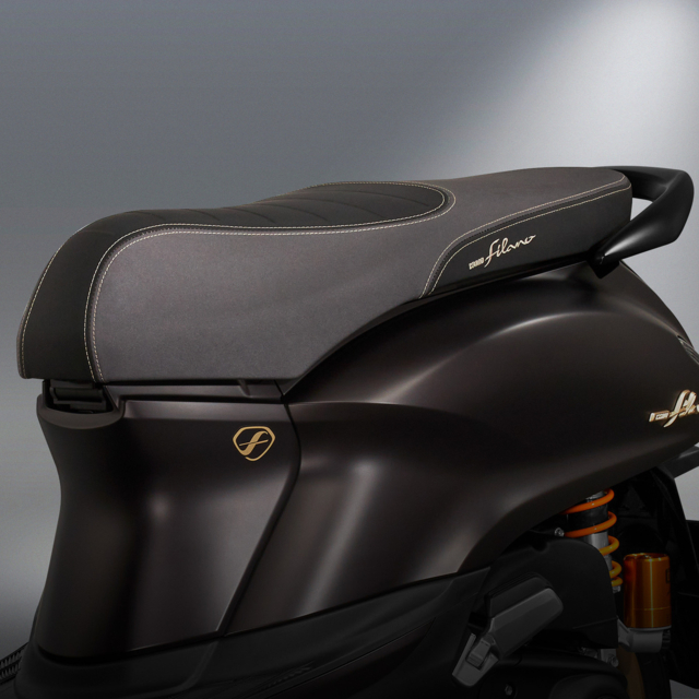 ด้วย SPECIAL EDITION SEAT เบาะนั่งพิเศษ สีสันแบบทูโทน ใหญ่ นุ่มนั่งสบายทั้งคนขี่ และคนซ้อน มาพร้อมกับ SPECIAL EDITION EMBLEM เอกลักษณ์ด้วยโลโก้ GRAND FILANO Special Edition สีทอง