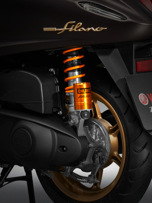 OHLINS for GRAND FILANO SPECIAL EDITION* โช้คอัพพิเศษสำหรับ GRAND FILANO โดยเฉพาะ โดดเด่นด้วยซับแทงค์สีทอง คุณภาพสูง ปรับตั้งค่า Full adjust ได้ 3 แบบ (Rebound, Preload, Compression) เพื่อการขับขี่ที่นุ่มสบาย