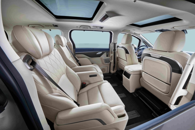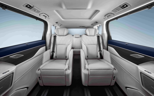 อัดแน่นไปด้วยสิ่งอำนวยความสะดวกสบายระดับไฮเอนด์ ขนาดตัวรถที่ยาวถึง 5,405 มิลลิเมตร และกว้าง 1,960 มิลลิเมตร พร้อมพื้นที่เก็บสัมภาระที่ปรับความลึกได้หลายระดับ ทำให้รถยนต์คันนี้มีพื้นที่ใช้สอยที่กว้างขวางที่สุดในเซกเมนต์เดียวกัน มอบความรู้สึกวีไอพีระดับเฟิร์สคลาสด้วย เบาะนั่งคู่เต็มตัวสไตล์กัปตัน (Double Full-Size Captain’s Seats) ทั้ง 3 แถว รองรับสรีระผู้ขับขี่และผู้โดยสารด้วยระบบไฟฟ้าที่สมบูรณ์แบบ ปรับตำแหน่งได้สูงสุด 12 รูปแบบ พร้อมความสะดวกสบายที่หลากหลาย เช่น การนวด, การระบายอากาศ, การออกแบบไฟอ่านหนังสืออันเป็นเอกลักษณ์