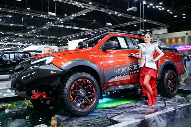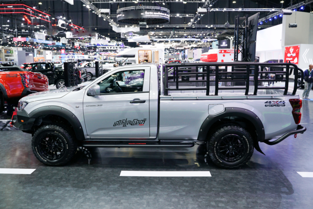 NEW! ISUZU D-MAX HI-LANDER 4 ประตู 2.2 Ddi MAXFORCE M และเกียร์อัตโนมัติ 8 สปีด ปลดล็อกนิยามใหม่แห่งปิกอัพยกสูงระดับ TOP CLASS ที่ผสมผสานความหรูหราอย่างลงตัว ด้วยดีไซน์สปอร์ตโฉบเฉี่ยวก้าวล้ำไปสู่เทคโนโลยีอนาคตแฝงด้วยศาสตร์แห่งวิศวกรรมการขับเคลื่อน ล้ออัลลอยขนาด 18 นิ้ว ดีไซน์แบบ Turbine Spiral ห้องโดยสารพรีเมี่ยมด้วยแนวคิด High-Class & Sophisticated โดดเด่นด้วย Miura Design พร้อมการออกแบบตามหลัก Usability Design เบาะนั่งเทคโนโลยี COOLMAX ลดการสะสมความร้อน พร้อมระบบปรับเบาะไฟฟ้า 8 ทิศทางในตำแหน่งที่นั่งคนขับ และเทคโนโลยีที่ช่วยให้ชีวิตสะดวกสบายยิ่งขึ้น เข้าร่วมโชว์ทั้งสิ้น 2 คัน โดยสีใหม่ เทาเอลบรุส โอเพค (Elbrus Grey Opaque จัดแสดงเป็นไฮไลท์บนเวที และยังมีรุ่นเดียวกัน สีดำบาวาเรียน ไมก้า (Bavarian Black Mica) จัดแสดงด้านล่าง