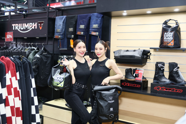 ในขณะเดียวกันภายในบูธไทรอัมพ์ยังมี Triumph Performance Lubricants (TPL) ผลิตภัณฑ์หล่อลื่นและดูแลรักษารถจักรยานยนต์ไทรอัมพ์ของคุณ รวมถึงการเผยโฉมของรถจักรยานยนต์ไทรอัมพ์ Daytona 660 Racing Custom คันเดียวในไทยที่จะมาสร้างแรงบันดาลใจในการแต่งรถสไตล์ Racing พร้อมให้เป็นเจ้าของรถจักรยานยนต์ไทรอัมพ์รุ่นที่ชอบด้วยโปรโมชันจัดเต็ม 3-Year Worry Free และข้อเสนอทางการเงินมูลค่ารวมสูงสุด 250,000 บาท รวมถึงรับสิทธิ์ซื้ออุปกรณ์เสริมแท้จากไทรอัมพ์ลด 50% เมื่อซื้อรถจักรยานยนต์ไทรอัมพ์รุ่นที่ร่วมรายการ ตลอดจนช้อปปิ้งเพลินไปกับส่วนลดเสื้อผ้าและอุปกรณ์สวมใส่สูงสุด 50% ไม่พอ! ห้ามพลาดกับการร่วมสนุกในแคมเปญซื้อมอเตอร์ไซค์ ชิงบิ๊กไบค์ ลุ้นรับไทรอัมพ์ Scrambler 1200 X มูลค่า 599,000 บาท ได้ตลอดการจัดงานทั้ง 12 วัน นายชินศักดิ์ กล่าวทิ้งท้าย