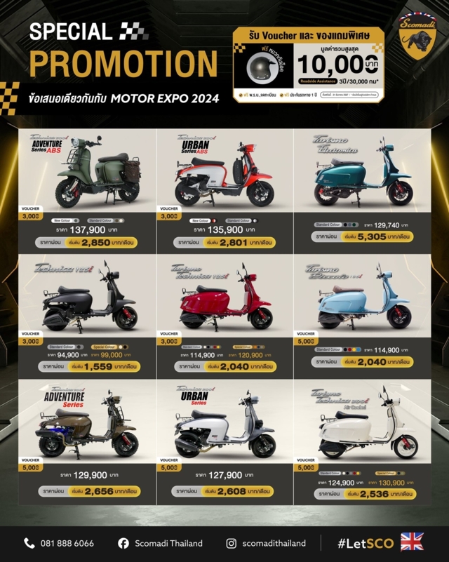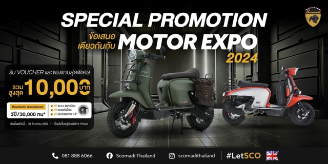 Scomadi สโกมาดิ พร้อมให้เป็นเจ้าของสกู๊ตเตอร์บริทิช โมเดิร์น คลาสสิก ทุกรุ่น ด้วยข้อเสนอเดียวกับ มอเตอร์ เอ็กซ์โป 2024 เมื่อจองและออกรถตั้งแต่วันนี้ – 31 ธันวาคม รับฟรี! พ.ร.บ, จดทะเบียน คูปองส่วนลด หมวกกันน็อคสุดพรีเมียม และบริการ Roadside Assistance 3 ปี / 30,000 กม. มูลค่ารวมสูงสุด 10,000 บาท ไม่ว่าจะเป็น