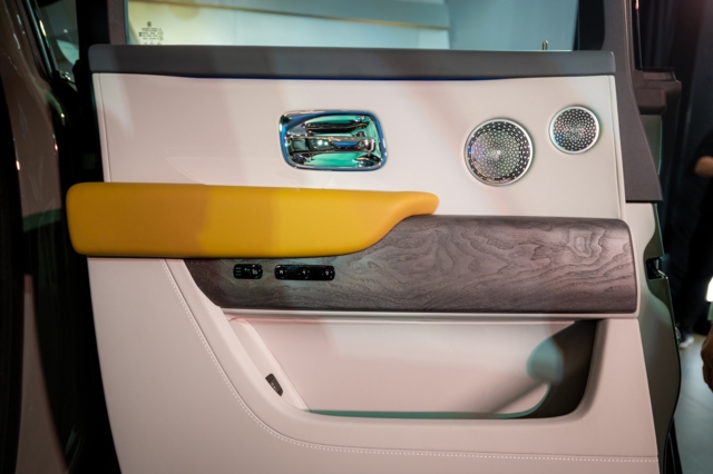 ถัดมาด้านขวากันเป็นอีกไฮไลท์สำคัญ คือ ‘Spirit of Ecstasy Clock Cabinet’ หรือนาฬิกาแบบใหม่ ที่มาพร้อมนางฟ้าเรืองแสง ผลิตจากสเตนเลสทั้งชิ้นดูสวยงามและหรูหราขั้นสูงสุด เมื่อผู้โดยสารเปิดประตูรถ มาตรวัดหน้าผู้ขับจะสว่างขึ้น ตามด้วยจอแสดงผลตรงกลาง, แดชบอร์ดเรืองแสง ก่อนนำสายตาสู่นางฟ้าบริเวณฐานนาฬิกา เกิดเป็นการแสดงแสงสีแบบไฮ-คลาส เป็นผลจากการพัฒนากว่า 4 ปี