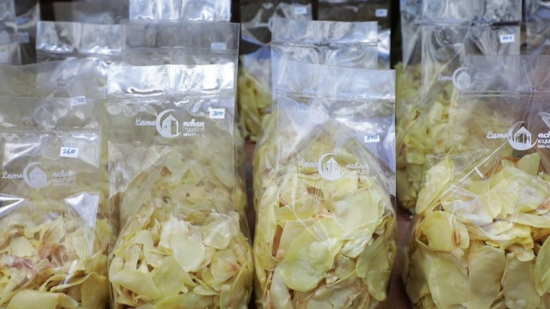 ร้านละมุนจันทร์ มีขนมให้เลือกมากมายหลายแบบ ไม่ว่าจะเป็น ทุเรียนทอด ที่อบใหม่ทุกวัน หรือจะเป็น ขนมฝรั่งที่มีให้เลือกกว่า 5 หน้า ทุเรียน ลูกเกด อัลมอนด์ ช็อกชิพ ฝอยทอด หอมละมุนน่ากินทุกหน้าเลย