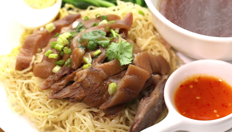 ร้านจองยุกยิน ขาหมูเบตง รสชาติมีเอกลักษณ์เฉพาะตัวต่างจากร้านอื่นๆ ตรงที่ขาหมูร้านนี้มีสามรส เปรี้ยวนิด หวานหน่อย และเค็มปลายๆ อร่อยกลมกล่อมลงตัว ตัวขาหมูหนังเด้ง เนื้อฉ่ำนุ่ม ทำสดใหม่ทุกวัน นอกจากนี้ยังมีเมนูอื่นๆ ให้ได้ลองอีกเพียบ อย่าง บะหมี่หม่าล่าสูตรเสฉวน, ซุปเปอร์คากิ และขนมหวานที่หาทานยาก อย่าง ลี่ถัง (สาลี่ตุ๋น), วุ้นชาหอมหมื่นลี้ และเถาเจียว ก็มีนะ ฟินทุกเมนูขนาดนี้ ต้องลอง กินแล้วจะติดใจ