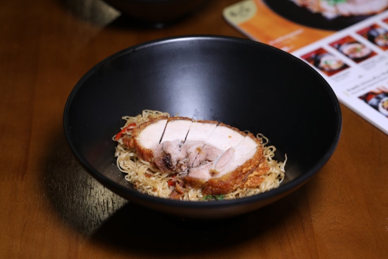 บะหมี่ผัดกะเพราหมูกรอบ100.-