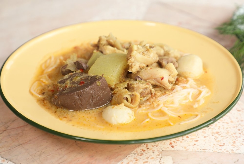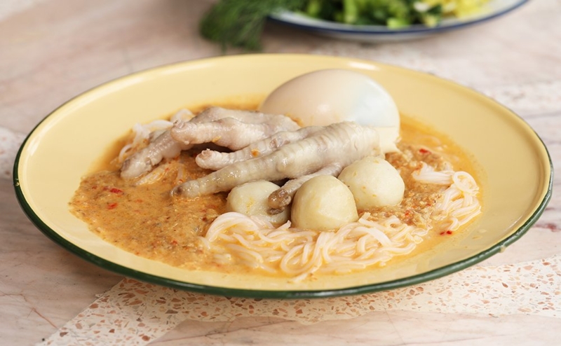 - ขนมจีนน้ำยาป่าผสมกะทิ+ขาไก่ ราคา 50 บาท