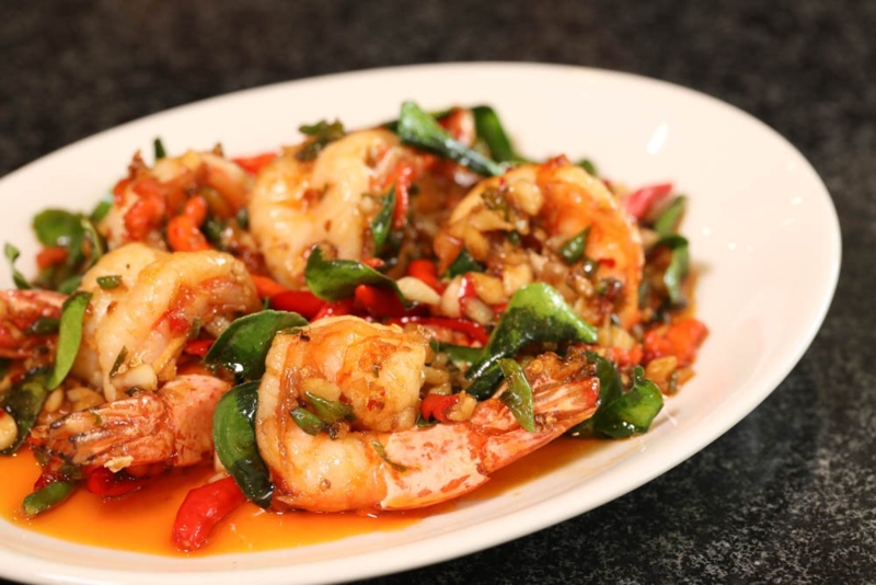 - กุ้งผัดพริกขี้หนู : ใช้กุ้งแชบ๊วยขนาดใหญ่ และใช้พริกขี้หนูสวนขนาดเล็ก ซึ่งจะทำให้เผ็ดและหอม