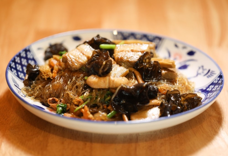 - ผัดวุ้นเส้นไหหลำ (จับฉ่ายไหหลำ) (ราคา 279 บาท) - ทางร้านนำกุ้งแห้ง ปลาหมึกแห้ง หมูสามชั้น เห็ดหูหนูดำ ฟองเต้าหู้ มาผัดรวมกันกับวุ้นเส้น