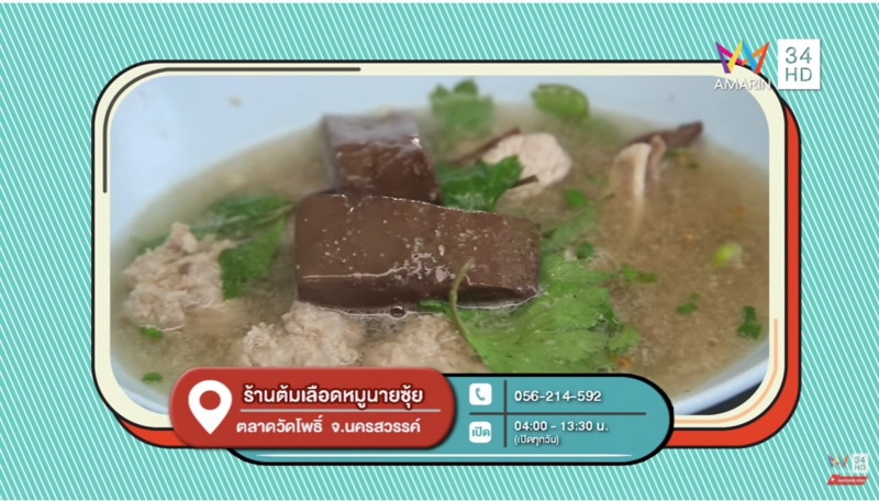 ร้านต้มเลือดหมูนายซุ้ย ต้มเลือดหมูที่ขายมายาวนานกว่า 60 ปี น้ำซุปสุดเข้มข้น ได้ความข้นและความหวานจากการนำเครื่องในไปลวก อีกหนึ่งทีเด็ดอยู่ที่การใช้ผักจิงจูฉ่าย หอมพริกไทย ไม่มีกลิ่นคาว
