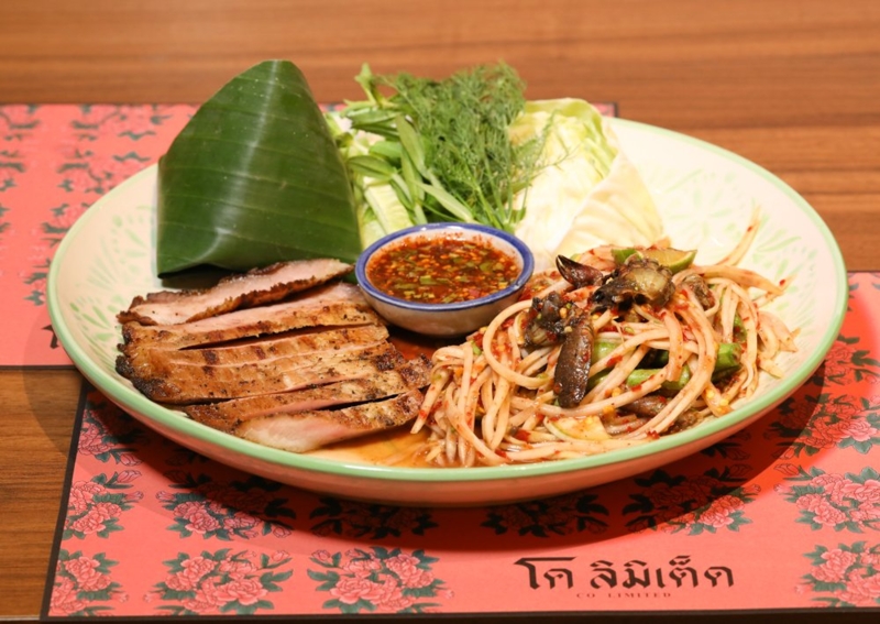 ส้มตำซิ่งโคลิมิเต็ดคอหมูย่าง (ราคา 295 บาท) - ยกระดับเมนูสุดแซ่บ สามารถเลือกส้มตำอร่อยได้ตามใจคุณ ตำไทย ตำปูปลาร้า หรือ ตำข้าวโพด เสิร์ฟมาพร้อมคอหมูย่างนุ่มละลายในปาก พร้อมข้าวเหนียว จะแชร์ก็ได้ คนเดียวก็ฟิน