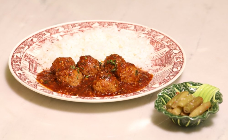 - ข้าวราดพอร์คบอลในซอสพริกสไตล์ฮ่องกง (ราคา 280 บาท) ลูกชิ้นหมูโฮมเมดใส่เห็ดหอม ปั้นก้อนโต ผัดกับซอสพริกที่เปรี้ยวหวานเผ็ดนิดหน่อย รสจัดจ้าน หอมกลิ่นน้ำมันงาและเหล้าจีน อร่อยเต็มคำแบบง่ายๆ สไตล์ฮ่องกง