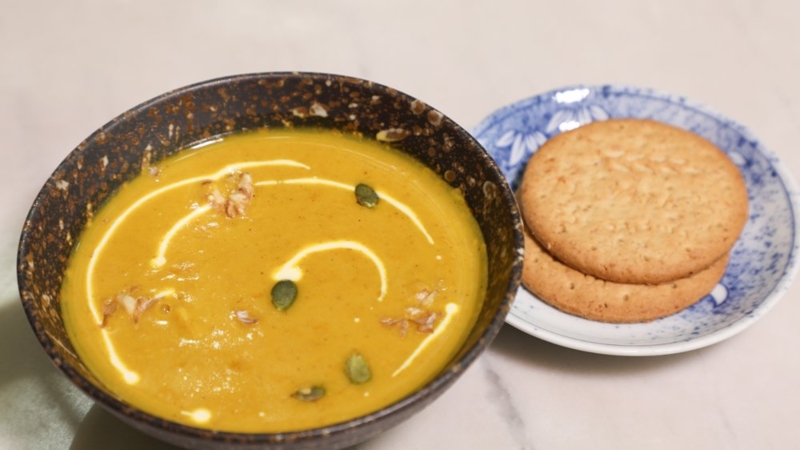 - Spiced Pumpkin Soup (ราคา 120 บาท) - ซุปฟักทองเนื้อข้น หอมเครื่องเทศที่ให้ความอบอุ่นร่างกาย มีความเผ็ดจากพริกไทยหน่อยๆ ให้ไม่เลี่ยน