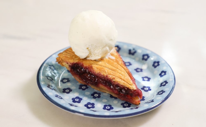 - Sour Cherry Pie (ราคา 220 บาท) - พายเชอรี่ที่ทางร้านทำเชอรี่ฟิลลิ่งเอง ทำให้ไส้เชอรี่มีรสเปรี้ยวกำลังดี ไม่หวานแสบคอ และมีรสเชอรี่กลมกล่อมตามธรรมชาติ ด้านในของฐานพายมี Frangipane Cream ซึ่งเป็นส่วนผสมของพาสทรีครีมและอัลมอนด์ครีมเข้าด้วยกัน ทำให้ขนมมีความละมุนกลมกล่อมของคัสตาร์ด และความหอมของอัลมอนด์+เหล้ารัมด้วย ไม่ได้มีแค่ความเปรี้ยวของเชอรี่อย่างเดียว