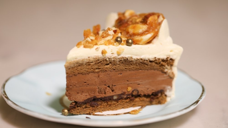 - Caramel Irish Coffee (ราคา 180 บาท) - เค้กมูสช็อคโกแลตผสมกาแฟรสเข้มข้น ละลายในปาก สลับชั้นเค้กกาแฟเนื้อนุ่ม และเพิ่มความกรุบกรอบด้วยเลเยอร์ของช็อคโกแลตพราลีนที่ใส่ทั้ง Crunchy Pearl และถั่วตัดเคลือบคาราเมล ปาดหน้าด้วย Salted Caramel และวิปครีมฟูๆ เบาๆ