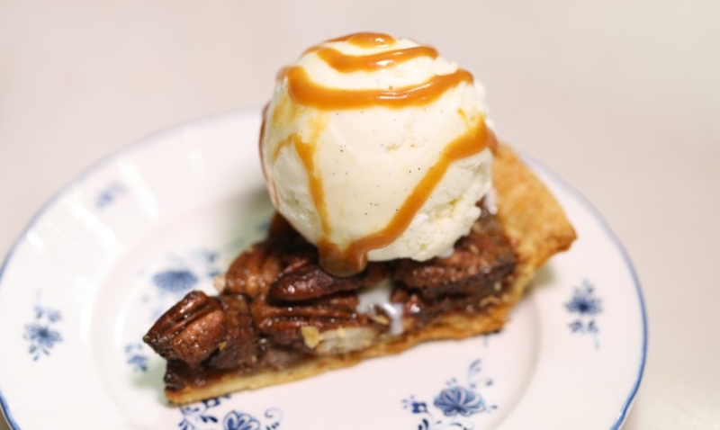 - Pecan Pie with Snow on Top (ราคา 220 บาท) - พีแคนพายสูตรเฉพาะของที่ร้าน หอม กรอบ ละมุนลิ้นอย่างมีเอกลักษณ์ ด้วยไส้ที่แม้จะหอมคาราเมล แต่กลับหวานหอมไม่เหนียวติดฟัน หรือหวานแสบคอแบบพีแคนพายทั่วไป ถั่วและแป้งพายกรุบกรอบ หอมเนย เหมือนอบจากเตาใหม่ๆ อุ่นร้อนๆ จนห้อมฟุ้งไปทั่วร้าน ก่อนที่จะโปะไอศกรีมวานิลามาดากัสด้า รสละมุน และราดด้วยคาราเมลซอสแบบโฮมเมด
