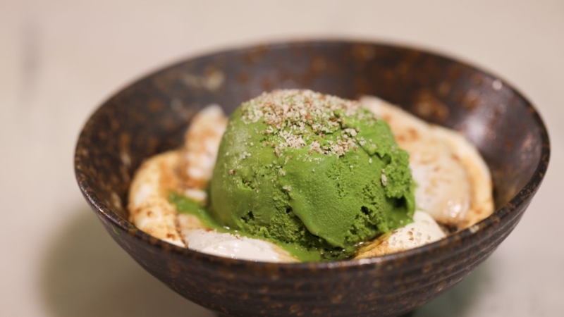 - พาเฟ่ต์ชาเขียวเต้าหู้ (ราคา 180 บาท) - ไอศกรีมชาเขียว Kyoto Matcha ทานคู่กับวิปครีมนุ่มเบา และเจ้าหู้ที่ทำจากถั่วลิสงสูตรเฉพาะของที่ร้าน ราดด้วยซอสขิงหวานหอม