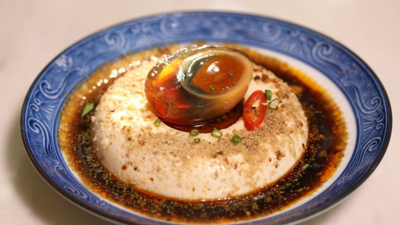 - ยำเต้าหู้ไข่เยี่ยวม้า (ราคา 110 บาท) - เมนูทานเล่นจากเต้าหู้ถั่วลิสงที่ทางร้านทำเอง นุ่มๆ เหนียวๆ หอมถั่ว ทานคู่กับน้ำมันพริกเผ็ดร้อน และไข่เยี่ยวม้าเยิ้มๆ เข้ากัน ตักเพลิน จนต้องขูดจาน