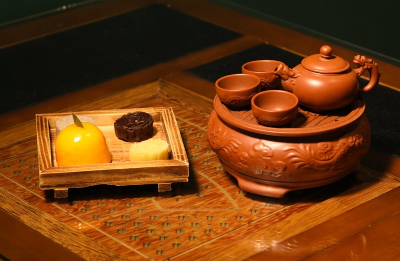 - ชุดชามังกร (ชาอู่หลงหอมหมื่นลี้) (ราคา 185 บาท) - ชุดชาจีนดินเผาที่เสิร์ฟพร้อมกับขนมหวาน สามารถเลือกใบชาได้ถึงสามตัว จะเป็นอู่หลงหอมหมื่นลี้ ชากุหลาบ และชาทิกวนอิม