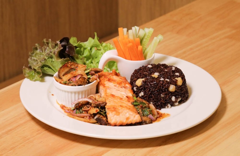 • ข้าวแซลมอนลาบเห็ดธัญพืช