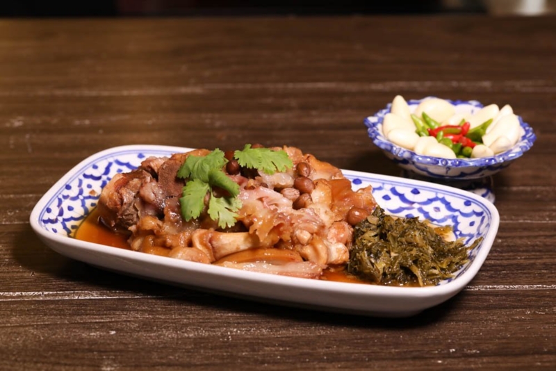 - ขาหมูคากิล้วน (ราคาจานเล็ก 100 บาท / จานกลาง 150 บาท / จานใหญ่ 200 บาท)
