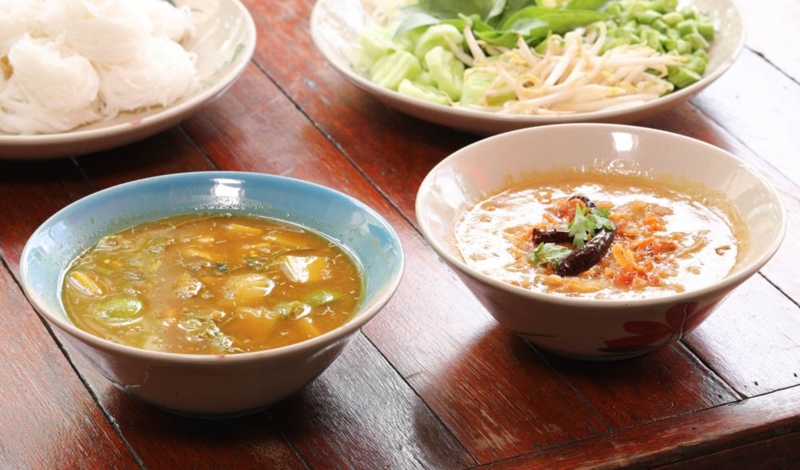 ร้านเฮือนหนมเส้น ร้านขนมจีนบุฟเฟ่ต์ที่ตักทานได้ไม่อั้น มีน้ำยาให้เลือกกว่า 7 อย่าง และยังมีของทานเล่น เครื่องดื่มและขนมหวานให้ด้วยในราคาหัวละ 145 บาท สามารถนั่งทานได้ 90 นาที