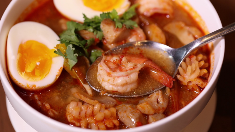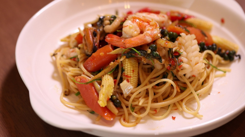 ร้าน Cock-A-Hoop คาเฟ่ที่เดิมขายกาแฟเป็นหลัก แต่ลูกค้าเรียกร้องให้มีอาหารคาว จึงเกิดเมนูทั้งอาหารคาวและของหวานเสริมขึ้นมา เมนูของคาวก็จะเป็นเมนูอาหารง่ายๆ เหมือนกินข้าวที่บ้าน แต่ทุกจานตั้งใจทำ ใช้วัตถุดิบอย่างดี และที่สำคัญราคาไม่แพง เมนูเด็ดฝั่งของคาว จะเป็น สปาเกตตี้ขี้เมาทะเล, มาม่าต้มยำกุ้ง, ลาบหมูทอด และสลัดกุ้งทอด ส่วนของหวานที่มาแล้วต้องสั่ง มะม่วงมูสเค้ก, บราวนี่ชีสเค้ก และ Plain Croissant