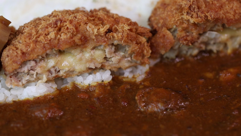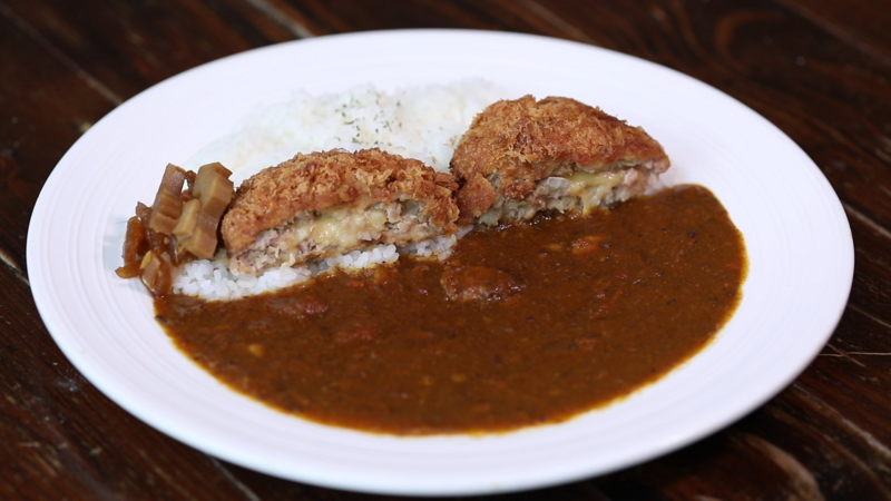 ข้าวแกงกะหรี่หมูผสมเนื้อสับทอดไส้ชีส (Menchi Katsu Curry)150.-