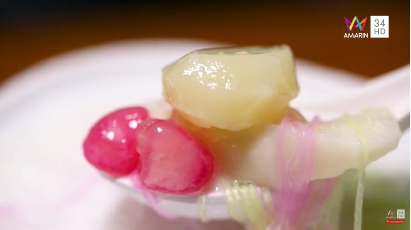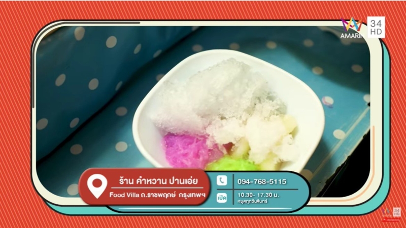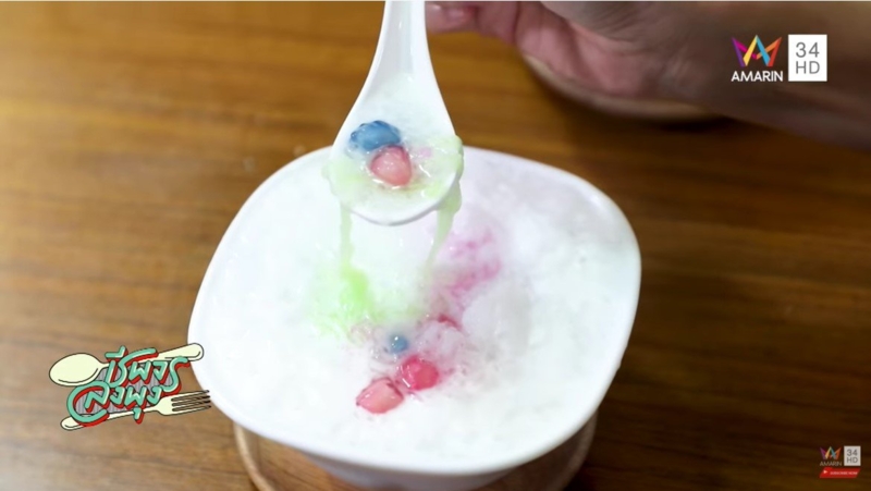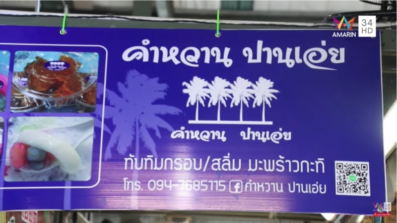 ร้านคำหวานปานเอ่ย สุดเด็ดกับทับทิมกรอบมะพร้าวกระทิ ทับทิมกรอบทำเอง หอมกระทิแป้งบาง ชิ้นใหญ่ ไม่หวานมาก หอมควันเทียน น้ำกะทิมี 2 แบบให้เลือก อัญชัน หรือกระทิ
