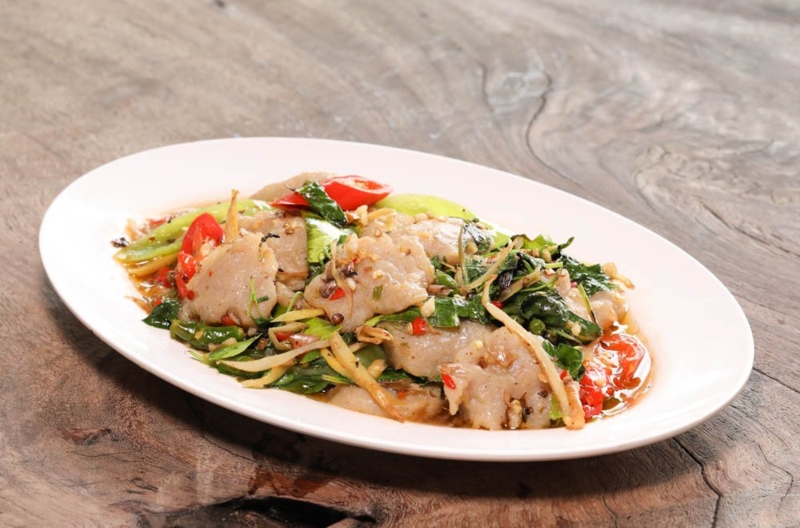 - เนื้อปลากรายผัดฉ่า (ราคา 180 บาท) - ปลากรายของทางร้านจะมีความเหนียวนุ่ม ผัดเข้ากับเครื่องผัดฉ่าที่มีสมุนไพรเผ็ดร้อน จัดจ้าน ไม่คาว เข้ากันดีมากๆ