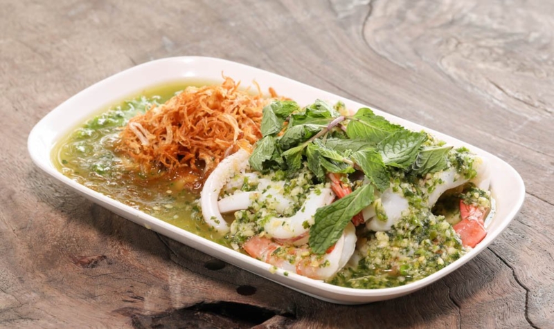 - ทะเลแซ่บ (ราคา 180 บาท) - เป็นเมนูที่ยกทะเลมาไว้ในจานนี้ มีทั้งกุ้ง หมึก ลวกสุกพอประมาณ และหอยนางรมสด ราดน้ำจิ้มซีฟู้ด