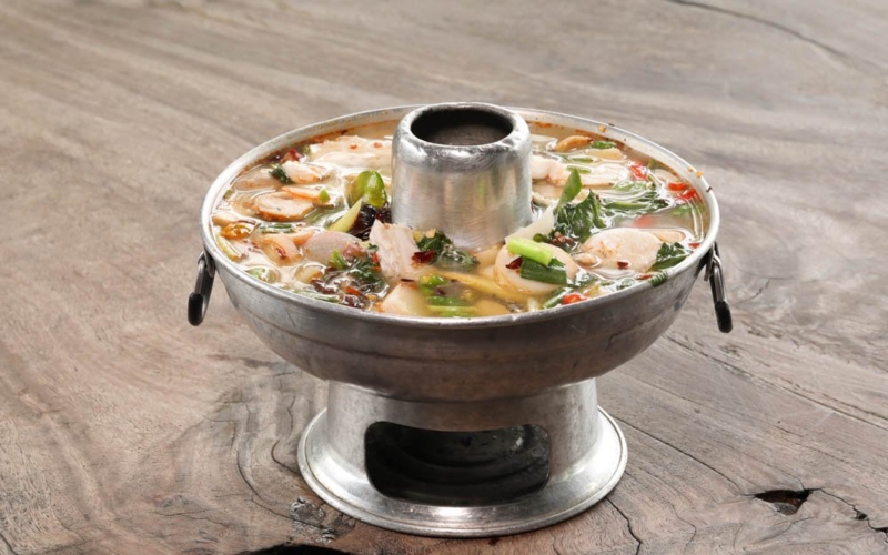 - ต้มยำบ้านไม้ หม้อไฟ (ราคา 200 บาท) - ต้มยำน้ำใส ใส่เนื้อปลาช่อนชิ้นพอดีคำ รสชาติจัดจ้าน หอมใบกะเพรา