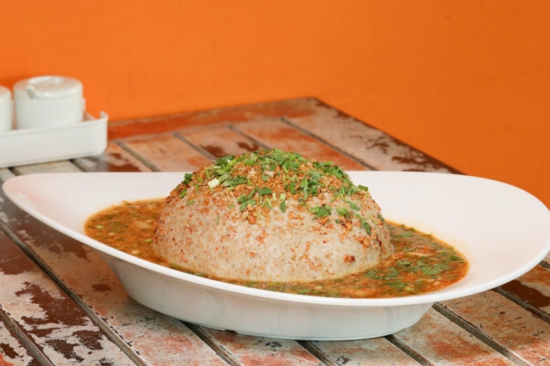 - ไข่มังกรยักษ์ (ราคา 777 บาท) - จานนี้สามารถทานได้ประมาณ 5 - 6 คน ต้องสั่งล่วงหน้า เพราะใช้เวลาทำประมาณ 3 ชั่วโมง และมีน้ำหนักประมาณ 3 กิโลกรัม เป็นหมูห่อเส้นบะหมี่และไข่ ราดด้วยน้ำต้มยำน้ำใส ปรุงรสจัดจ้านด้วยหมูสับ ถั่ว มะนาวสด และพริกคั่วเอง