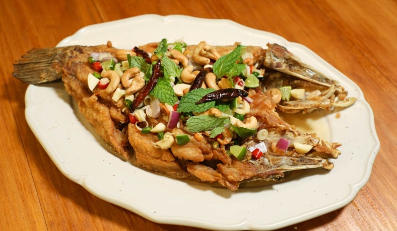 ยำปลากะพงทอดสมุนไพร490.-
