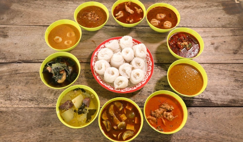 ร้านนฤภรขนมจีนเส้นสด ร้านขนมจีนที่มีน้ำยาให้เลือกกว่า 9 อย่าง จากทุกทิศทุกภาคของไทย ไม่ว่าจะเป็น น้ำยากะทิ, น้ำยาป่าลูกชิ้น-ตีนไก่, น้ำพริก, ไตปลา, น้ำเงี้ยว, น้ำยาใต้, พะแนงหมู, แกงเขียวหวานไก่ และแกงป่าปลาดุก อีกทั้งเส้นขนมจีนยังเป็นเส้นสดที่ทางร้านทำเองอีกด้วย