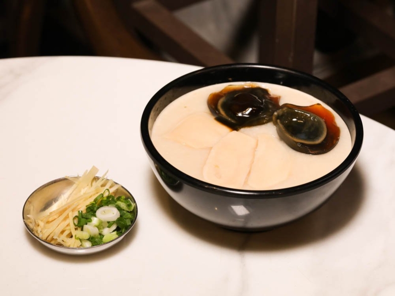 โจ๊กเป๋าฮื้อ + ไข่เยี่ยวม้า210.-