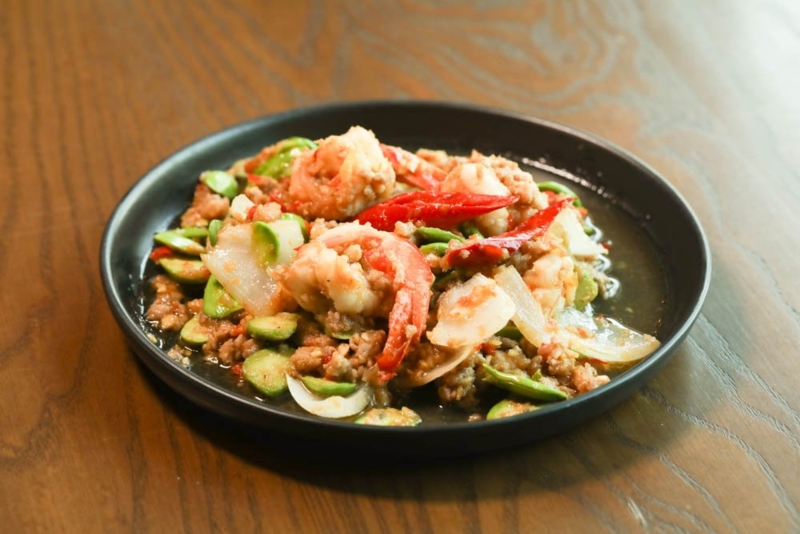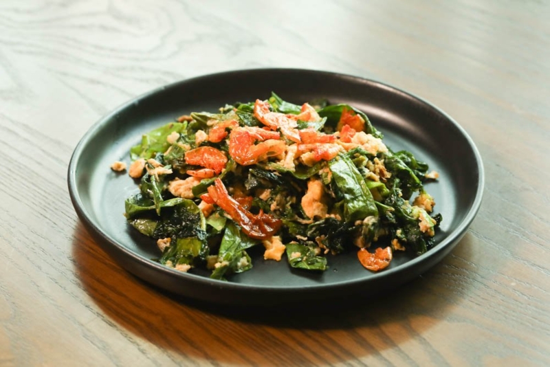ใบเหลียงผัดไข่กุ้งเสียบ180.-