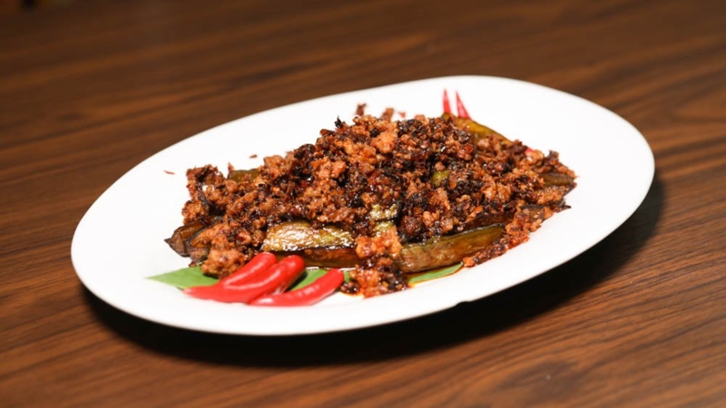 มะเขือยาวผัดปลาเค็ม180.-