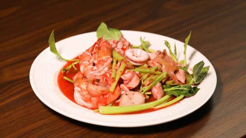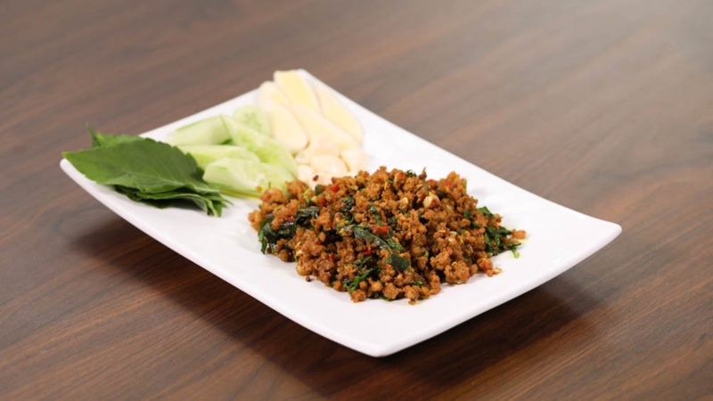 กระดูกหมูอ่อนผัดเผ็ดใบยี่หร่า180.-
