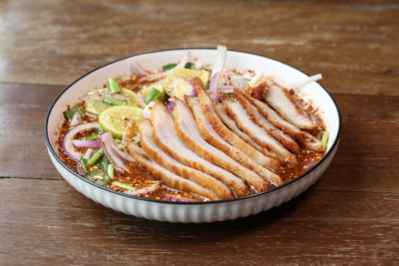 ยำคอหมูข้าวคั่ว225.-