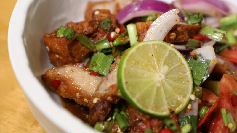 - ยำปลาร้าหมูสามชั้น ราคา 105 บาท