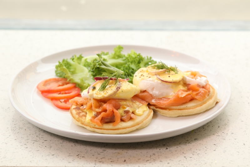 - Egg Benedict-hollandaise Sauce Salmon Pancake ราคา 250 บาท