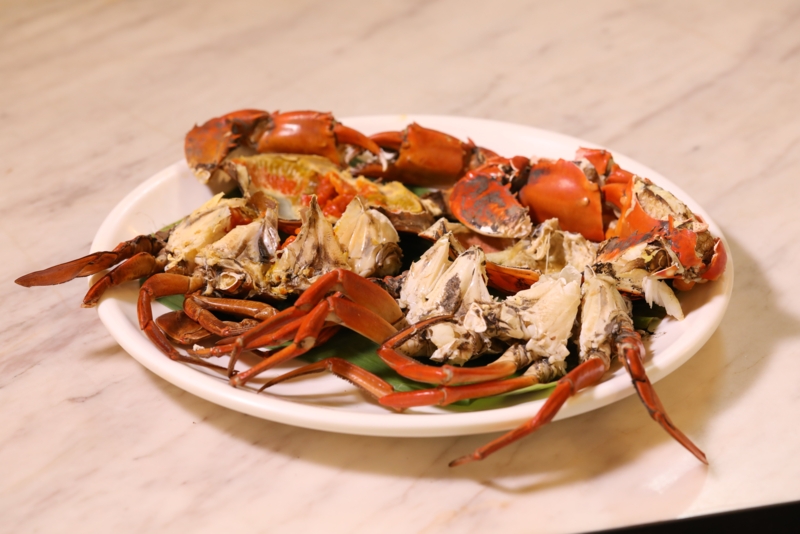 - ปูทะเลเนื้อ/ปูทะเลไข่นึ่ง ขีดละ 160 บาท