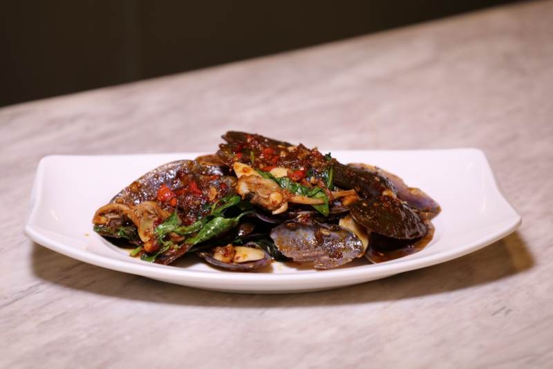 - หอยลายผัดพริกเผา ราคา 150 บาท