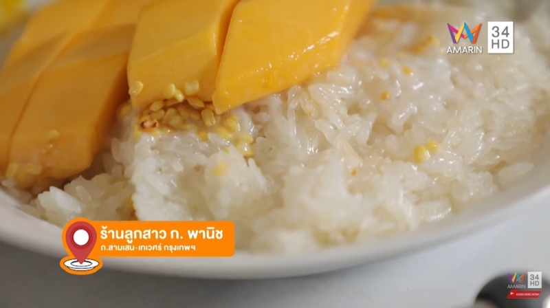 ร้านลูกสาว ก.พานิช ข้าวเหนียวมูนเจ้าดังแห่งย่านเทเวศน์ เปิดมานานกว่า 30 ปี ข้าวเหนียวมะม่วงเป็นสูตรของทางร้านเอง น้ำกะทิสดใหม่ ทานคู่กับมะม่วงอกร่องและน้ำดอกไม้ลูกใหญ่ๆ รับรองรสชาติอร่อยไม่เหมือนที่ไหน