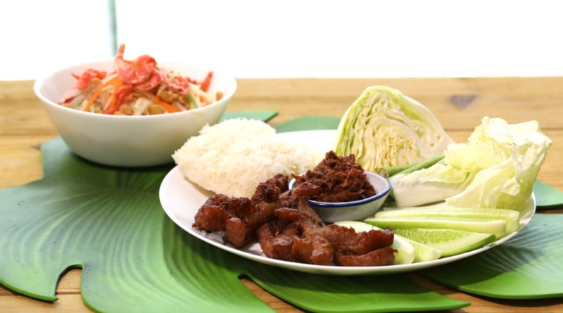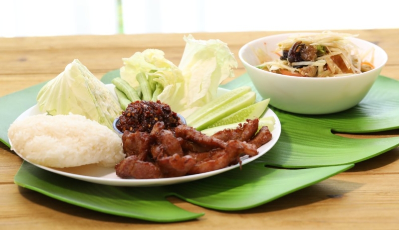 Set C ส้มตำสีอีแล่บ ทานกับ หมูแดดเดียวแจ่วปลาร้า99.-