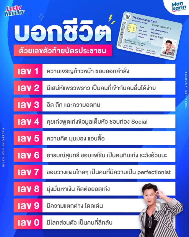 แมน การิน เผยความลับ 4 ตัวท้ายของบัตรประชาชน ชีวิตจะรุ่งจะรวยหรือลำบาก