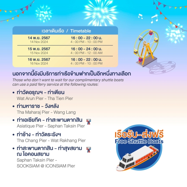 กทม.เปิดล่องเรือฟรี! 10 ท่าน้ำร่วมสมัย ฉลองเทศกาลลอยกระทง 14-16 พฤศจิกายน 2567