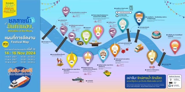 ล่องเรือฟรี! 10 ท่าน้ำร่วมสมัย งาน Bangkok River Festival 2024 เทศกาลสายน้ำแห่งวัฒนธรรมไทย ปีที่ 10 “ยลสายน้ำ ยินทำนอง” Free Shuttle Boat throughout 10 Piers of Contemporary Culture