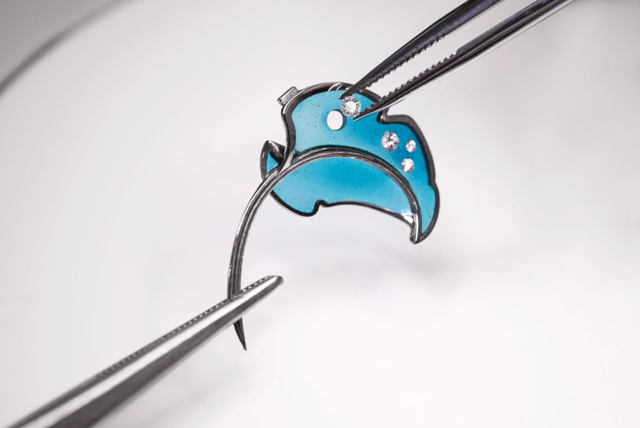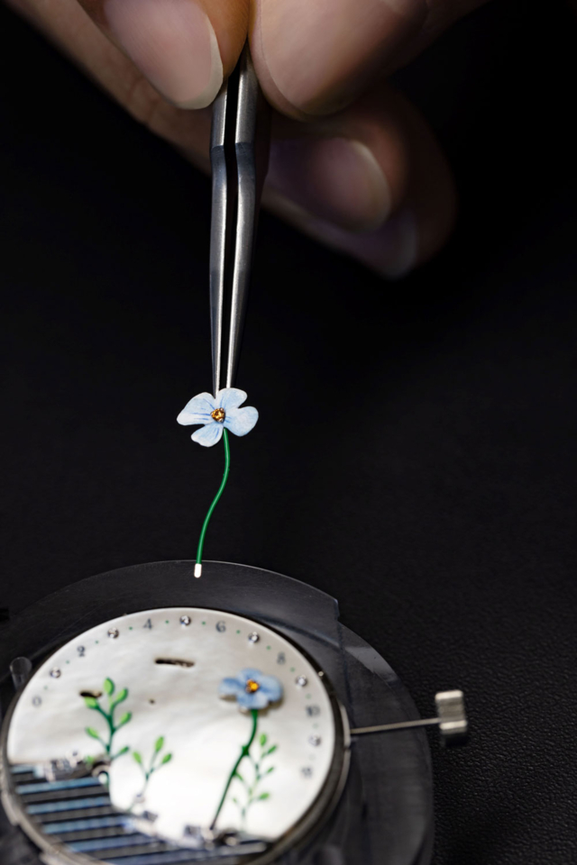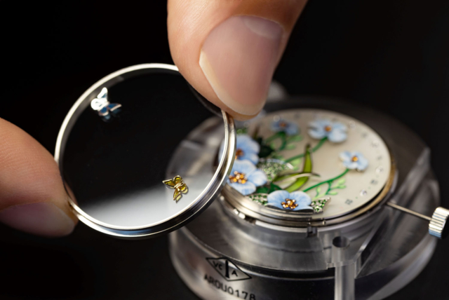 ภายในตัวเรือนที่ได้สัดส่วนอ่อนช้อย ละเมียดละไม หาได้ต่างอันใดจากศูนย์รวมทักษะ ความชำนาญแขนงต่างๆ ทางงานผลิตนาฬิกาข้อมือ, เครื่องประดับอัญมณี และหัตถศิลป์ตามธรรมเนียมดั้งเดิม เพื่อรังสรรค์ทัศนียภาพชวนฝันให้ปรากฏบนหน้าปัดอย่างสมจริง
